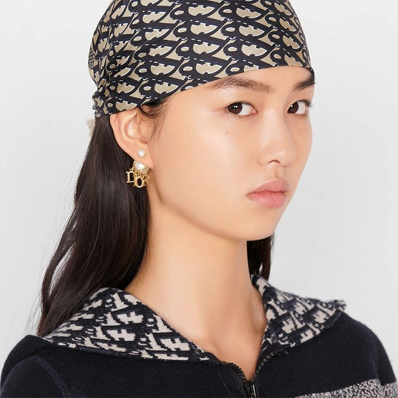 BestValue 8644 Dior Tribales Earrings Metal, White Resin Pearls and White Crystals Gold