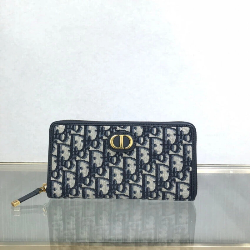 Blue Dior Dior 30 Montaigne Wallet Blue Oblique Jacquard