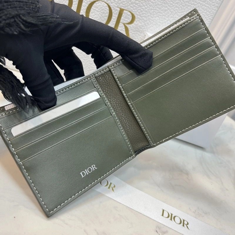 Dior Bi-Fold Wallet Grained Calfskin with CD Icon Signature Olive,FAST SHIPPING & Affordable!