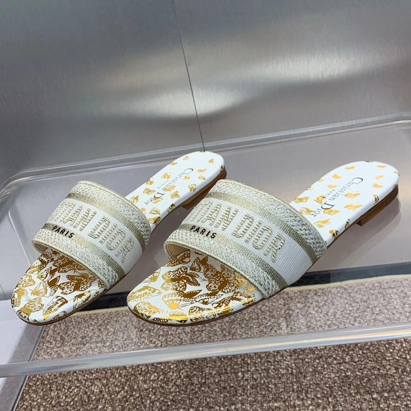 SmartChoice 9373 Christian Dior Dway Slides Women Gradient Butterflies Motif Canvas White